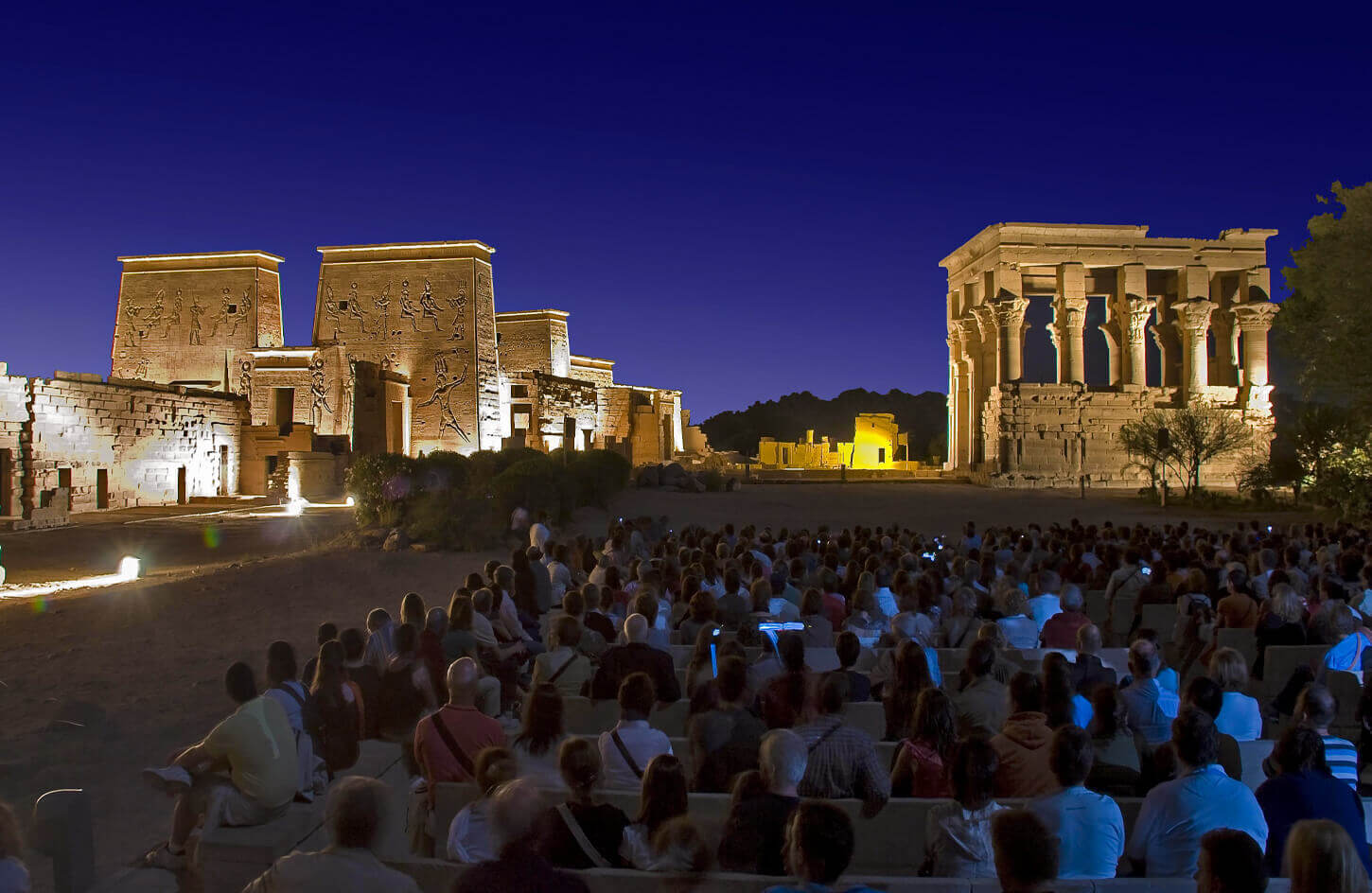 La velada comienza con un pintoresco paseo en lancha motora hasta el Templo de Philae, bellamente iluminado contra el cielo nocturno. Al llegar a la isla de Agilkia, retrocederá en el tiempo a través de un fascinante espectáculo de luz y sonido que da vida a las leyendas de Isis y Osiris.