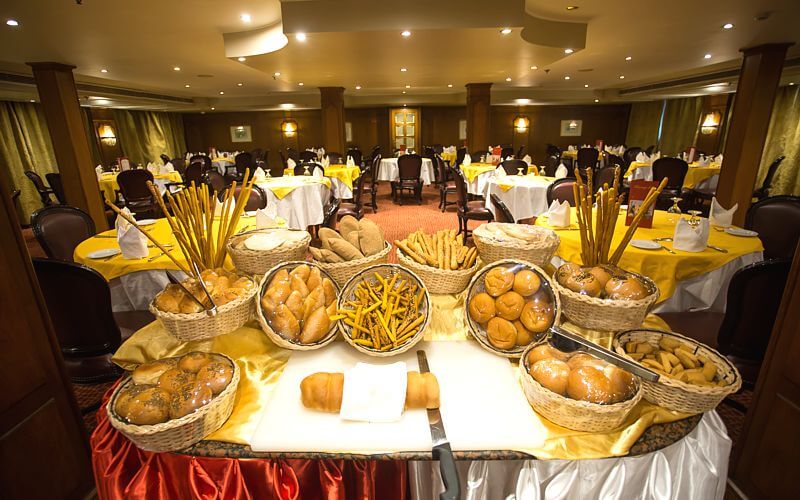 LA Sara Crucero por el Nilo, lanzado en 1996 y renovado en 2019, es un barco de crucero de 5 estrellas de primer nivel que ofrece lujo y elegancia a lo largo del río Nilo. Con su diseño refinado, que incluye telas ricas, paneles de madera y muebles de estilo clásico, el barco proporciona una atmósfera sofisticada para tu viaje. El restaurante a bordo atiende a 120 huéspedes, ofreciendo una combinación de servicio de camarero y opciones de bufé. Disfruta de una amplia selección de platos egipcios e internacionales en un ambiente cómodo y acogedor. Para el entretenimiento nocturno, el salón principal cuenta con un sistema de música y una pista de baile, donde se realizan vibrantes espectáculos como folclore egipcio y danza del vientre.